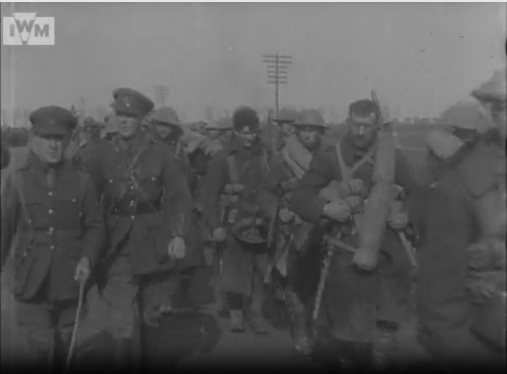 The film is from May 1917, a month or so after the battle at Monchy-le-Preux in which the Newfoundland battalion was almost wiped out by the Germans for a second time in less than a year. Decimated but back in the line with new men, young men looking like old men.