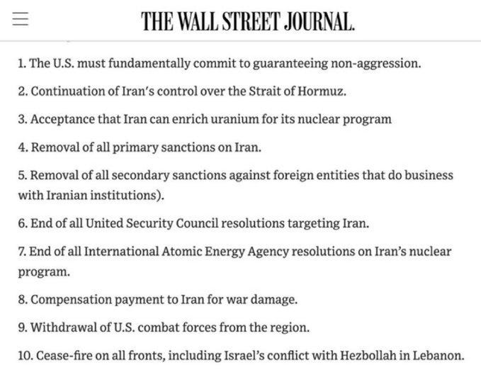 You don’t have to be very smart to read the Iranian 10-points and realise that none of them - literally none of them - align with the 15-point proposal Trump made to end the war or American strategic interests.